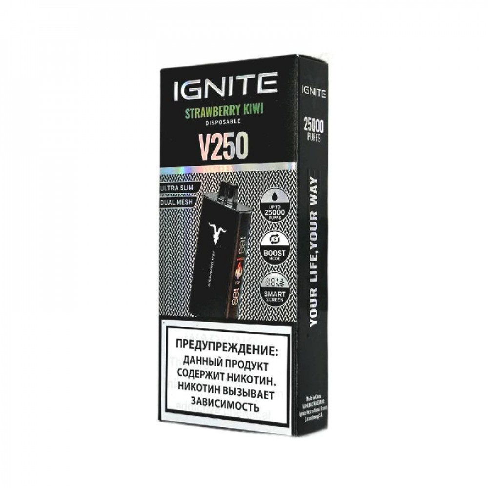 Электронная сигарета Ignite V250 Black 25000 - Strawberry Kiwi (Клубника киви) - купить в Тольятти